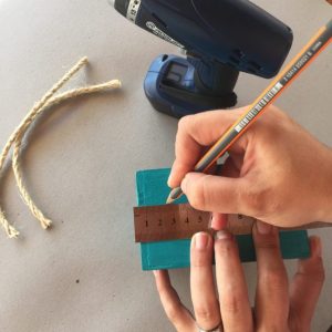 1- Una vez que tenemos pintado el cajón (en mi caso esta pintado con chalk paint y barnizado con laca) marcamos con un lápiz los lugares donde vamos a realizar las perforaciones.