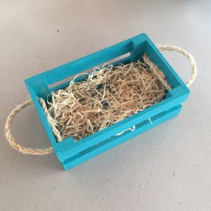 5- Ya casi está listo!! Lo único que nos falta ahora es decorarlo. A mi cajoncito lo decoré con algunas figuras de conejito y rafia en color natural.